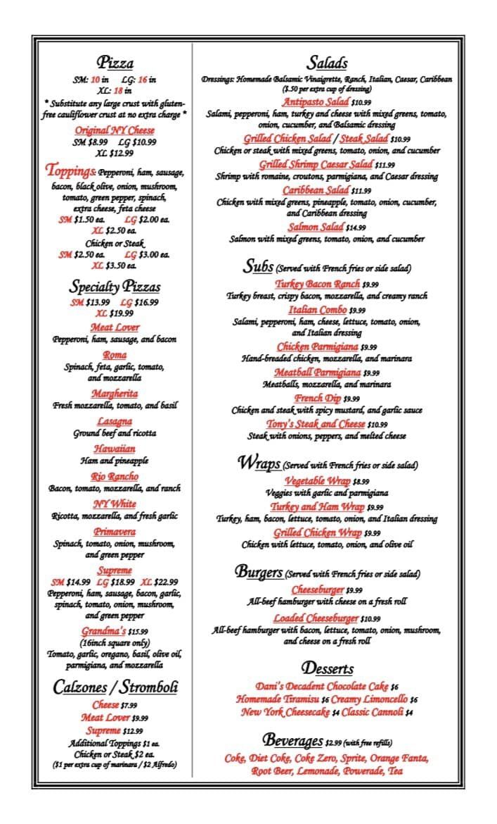 Burgers, too, make their mark, including the classic Cheeseburger and a loaded version that will satisfy any cravings for a meaty delight. With prices that are as reasonable as the warmth of the service, Tony’s stands out as a fantastic choice for a delightful meal without breaking the bank.